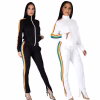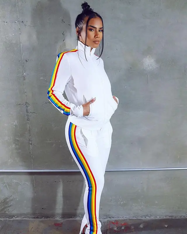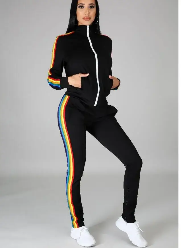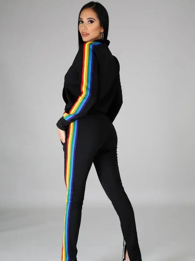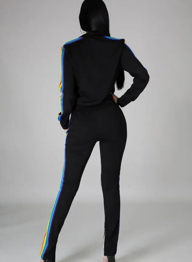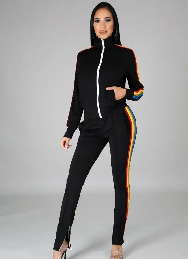 This women’s jogger coat suit combines sporty function with casual comfort, featuring a long sleeve zipper jacket and full-length pants.
