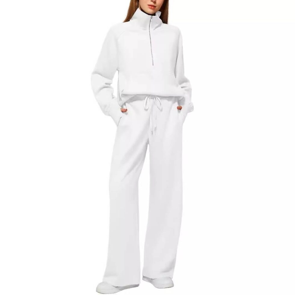 Women’s 2-Piece Set Half Zip Sweatshirt Wide Leg Pant Eco-Friendly Autumn Sweat-Wicking Tracksuit Casual Solid
